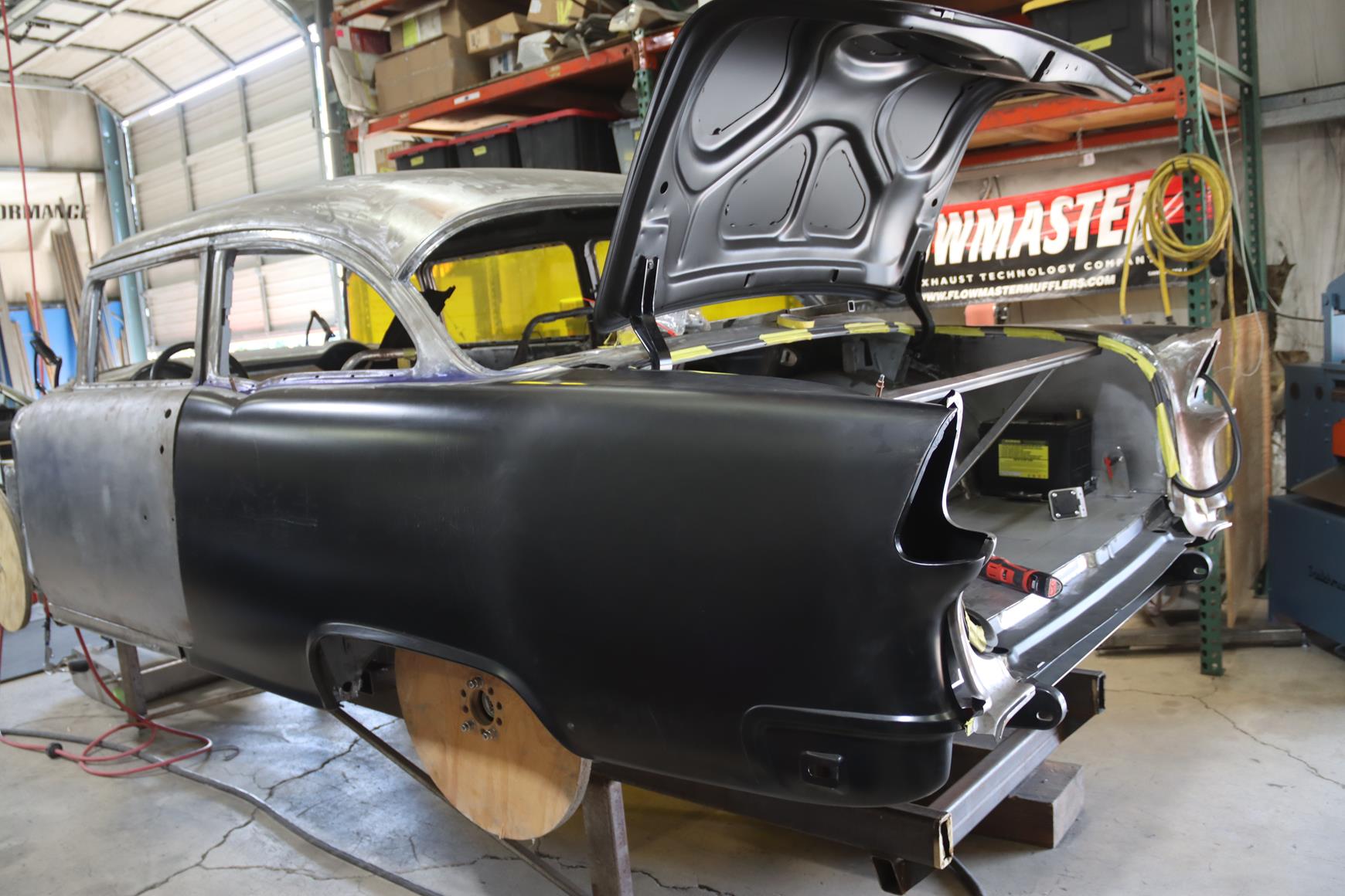 We will be finishing up this abandoned 1955 Chevy build that features a Twin Turbo Nelson engine.