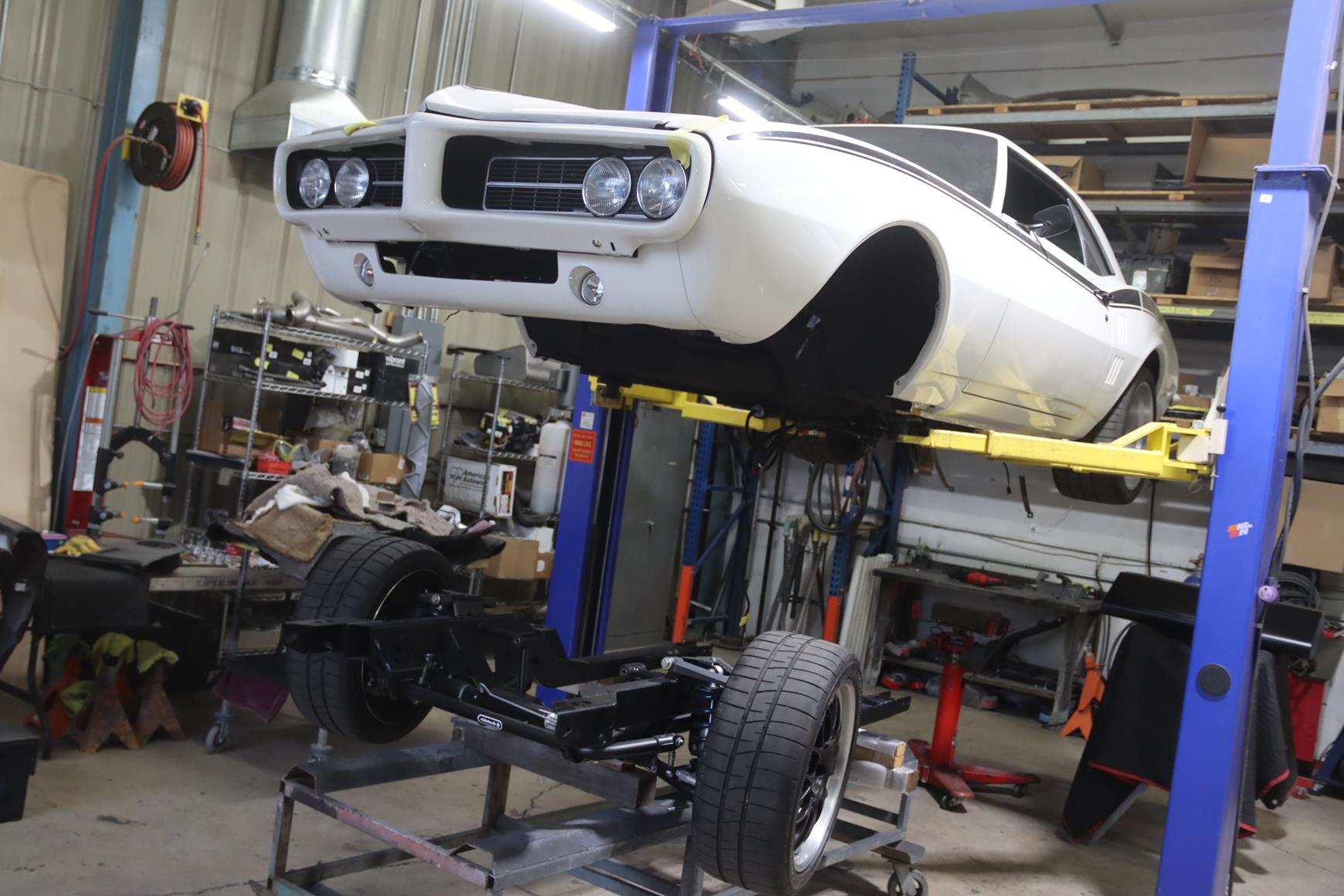 This white and black 1968 ProTouring Pontiac Firebird was built by our Restoration Shop with “go fast” parts from our in-house Speed Shop.