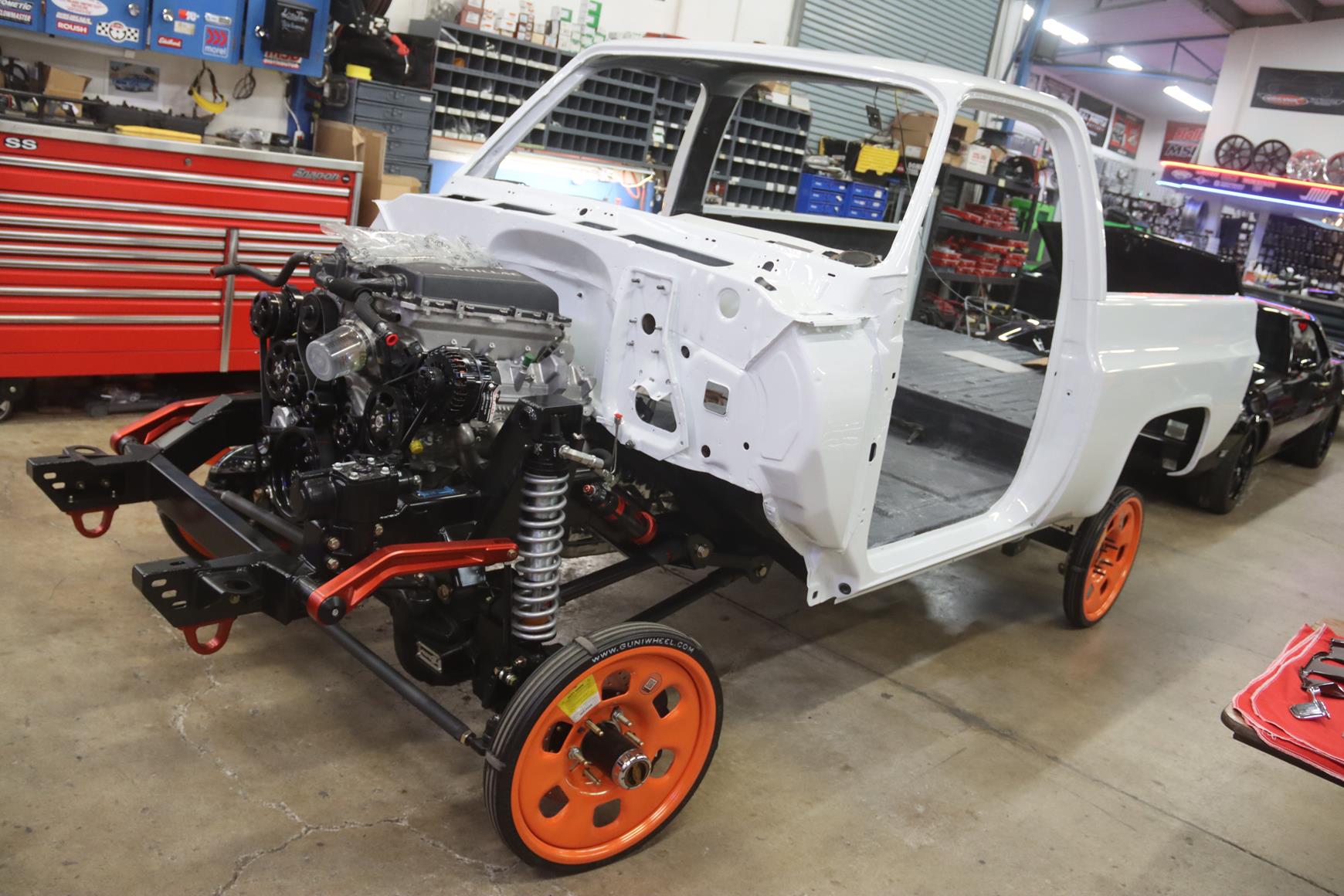 This 1988 Blazer will be body swapped onto a Roadster Shop RS4 4×4 chassis. The Blazer will be powered by a Cadillac V LT4 engine backed by a 10L90 transmission and an Atlas 2 speed transfer case.